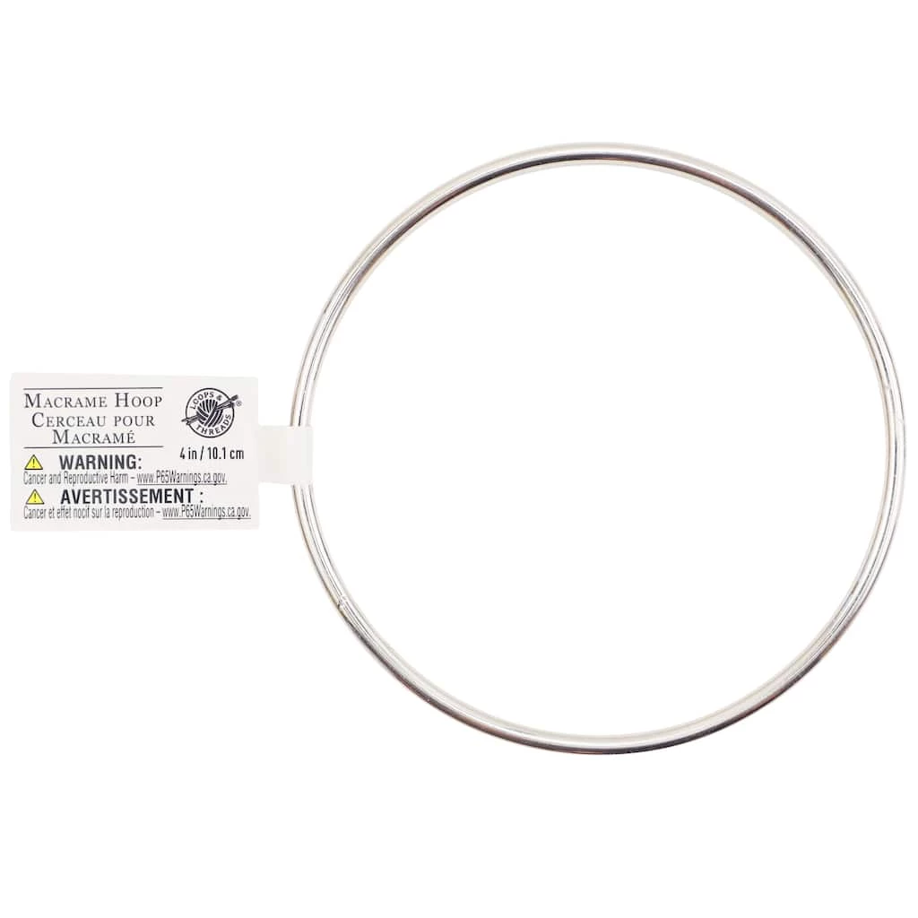 Make beautiful macramΓ© projects with this hoop ring. It’s comprised of nickel and is available in a variety of sizes to fit your macramΓ© project needs!